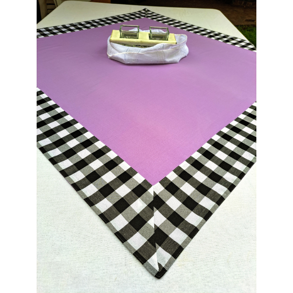 Mantel cuadrado en algodón liso con zócalo cuadrillé
